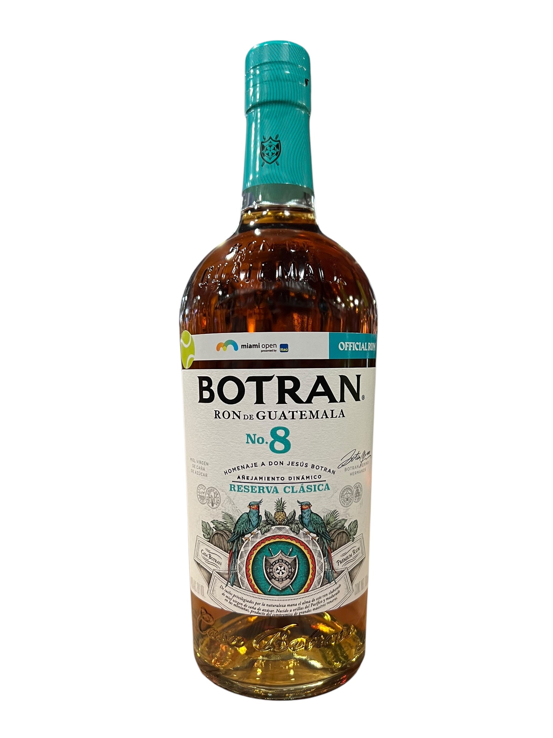 Ron Añejo Botran No. 8 Reserva Clásica is a refined aged rum from Guatemala, crafted with the utmost attention to detail. Using high-quality sugarcane grown in volcanic soils, this rum undergoes aging in a mix of American oak, sherry, and port barrels using the traditional Solera method. The result is a well-balanced rum with complex flavors and a smooth, approachable profile, perfect for sipping or mixing into elevated cocktails.